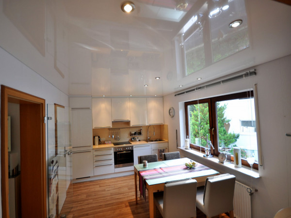 Выбирая качественное, долговечное и при этом привлекательное потолочное покрытие в коттеджи, стоит обратить внимание на натяжные высококачественные потолки. Они отличаются высокой прочностью и износостойкостью. Такие полотна станут дополнительной защитой для тех случаев, если крыша протечет – материал потолков сможет выдержать нагрузку до 100 л/м2. Это поможет сохранить в целости остальные элементы декора, мебель, аксессуары. Полотна потолков окажутся устойчивыми к воздействию влаги, благодаря чему их можно смело устанавливать в ванных комнатах или на кухне, а не только в жилых помещениях.