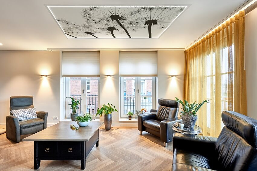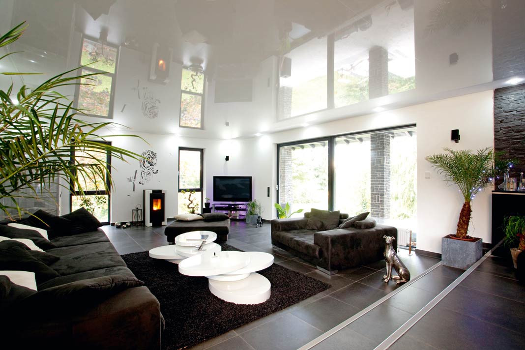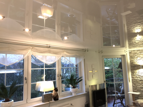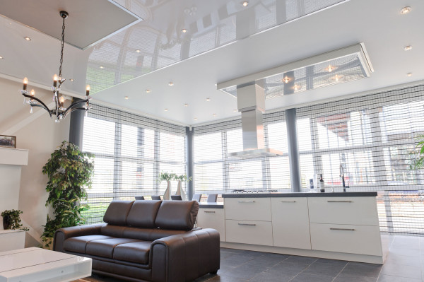 Выбирая качественное, долговечное и при этом привлекательное потолочное покрытие в коттеджи, стоит обратить внимание на натяжные высококачественные потолки. Они отличаются высокой прочностью и износостойкостью. Такие полотна станут дополнительной защитой для тех случаев, если крыша протечет – материал потолков сможет выдержать нагрузку до 100 л/м2. Это поможет сохранить в целости остальные элементы декора, мебель, аксессуары. Полотна потолков окажутся устойчивыми к воздействию влаги, благодаря чему их можно смело устанавливать в ванных комнатах или на кухне, а не только в жилых помещениях.