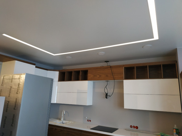 Монтаж световых линий проводится довольно просто. Кроме того, для этого не требуется предварительной подготовки поверхности, так как все неровности скрывают сами натяжные потолки. Это большое преимущество, так как вам не потребуется выносить мебель или прочие предметы из комнаты перед проведением установки.